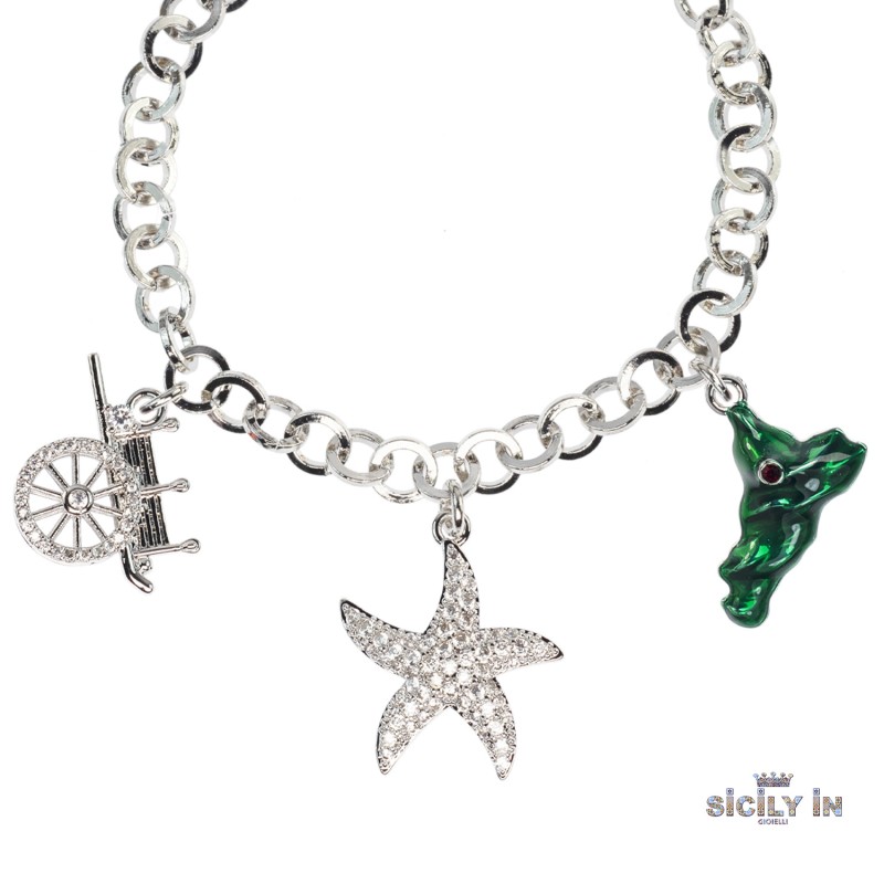 BRACCIALE IN METALLO ANALLERGICO CON 3 CHARMS - BC102B