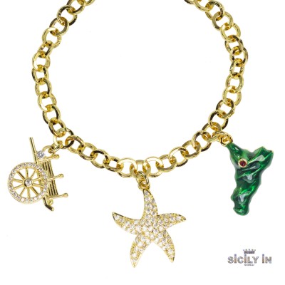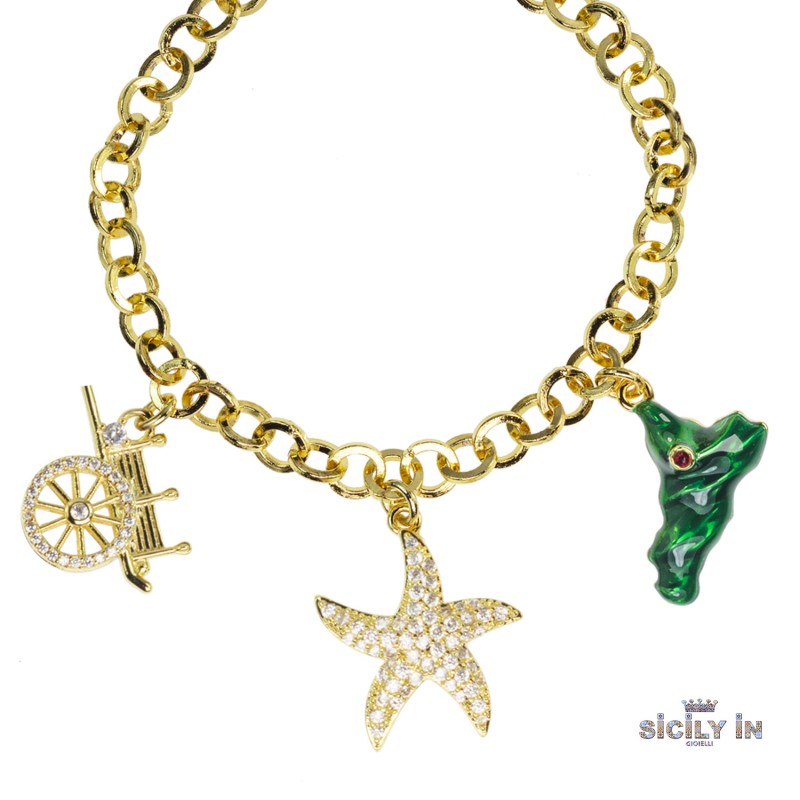 BRACCIALE IN METALLO ANALLERGICO CON 3 CHARMS - BC102G