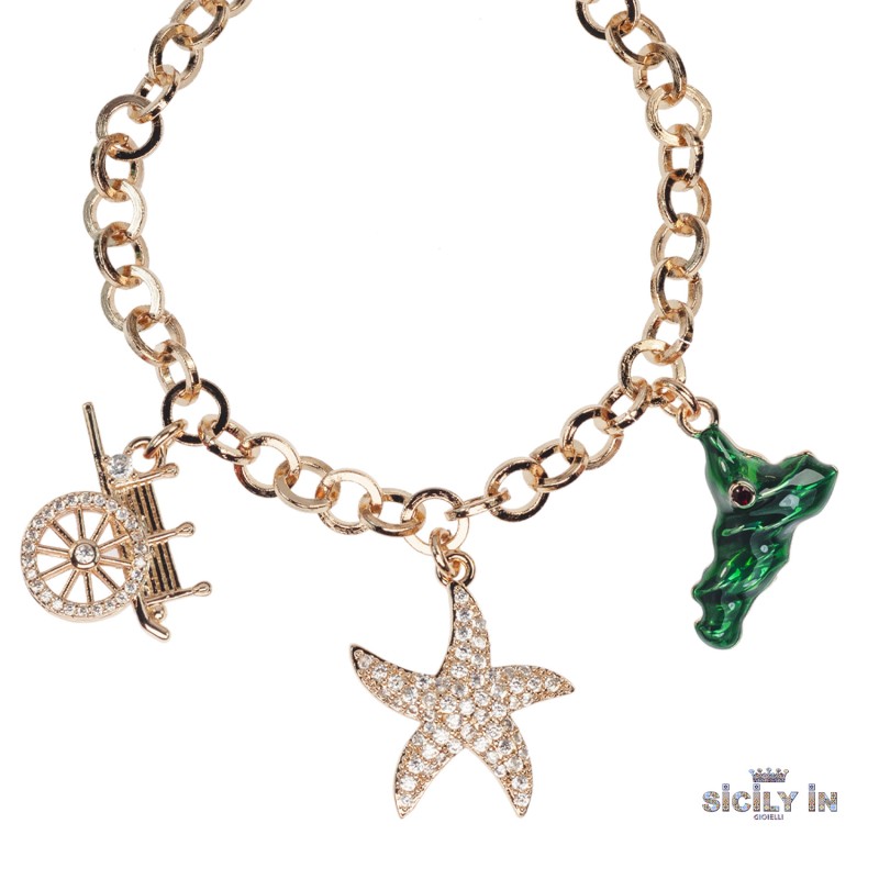 BRACCIALE IN METALLO ANALLERGICO CON 3 CHARMS - BC102R