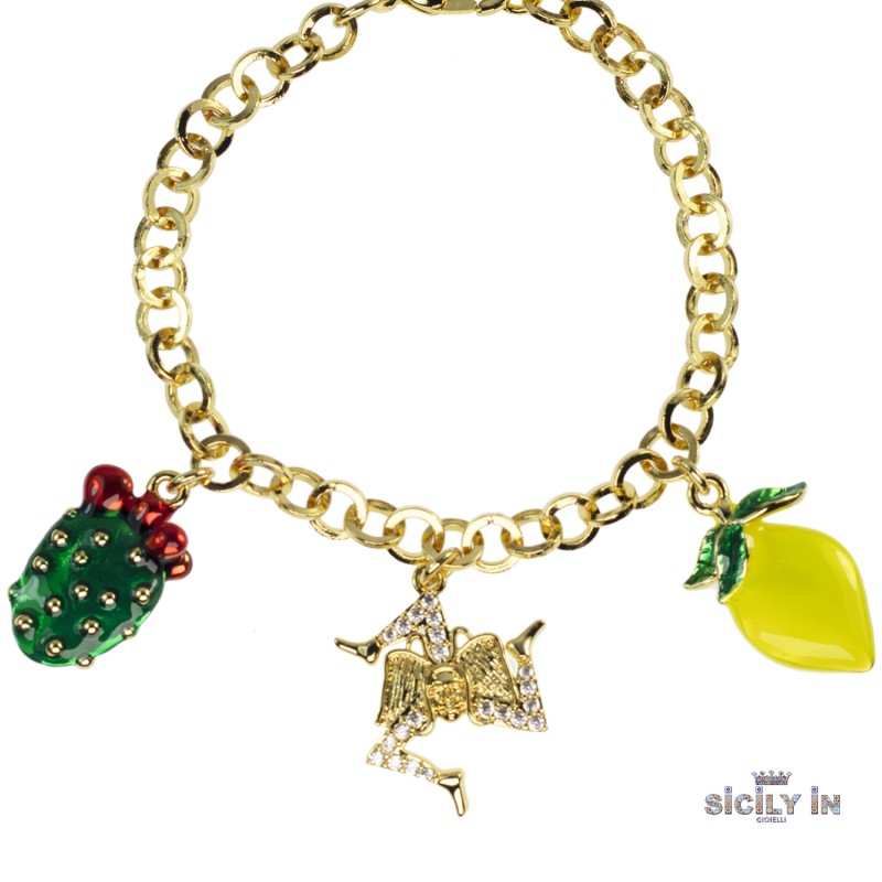 BRACCIALE IN METALLO ANALLERGICO CON 3 CHARMS - BC103G