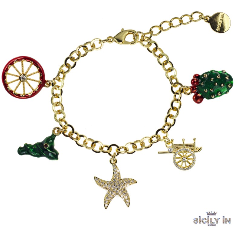 BRACCIALE IN METALLO ANALLERGICO CON 5 CHARMS - BC106G