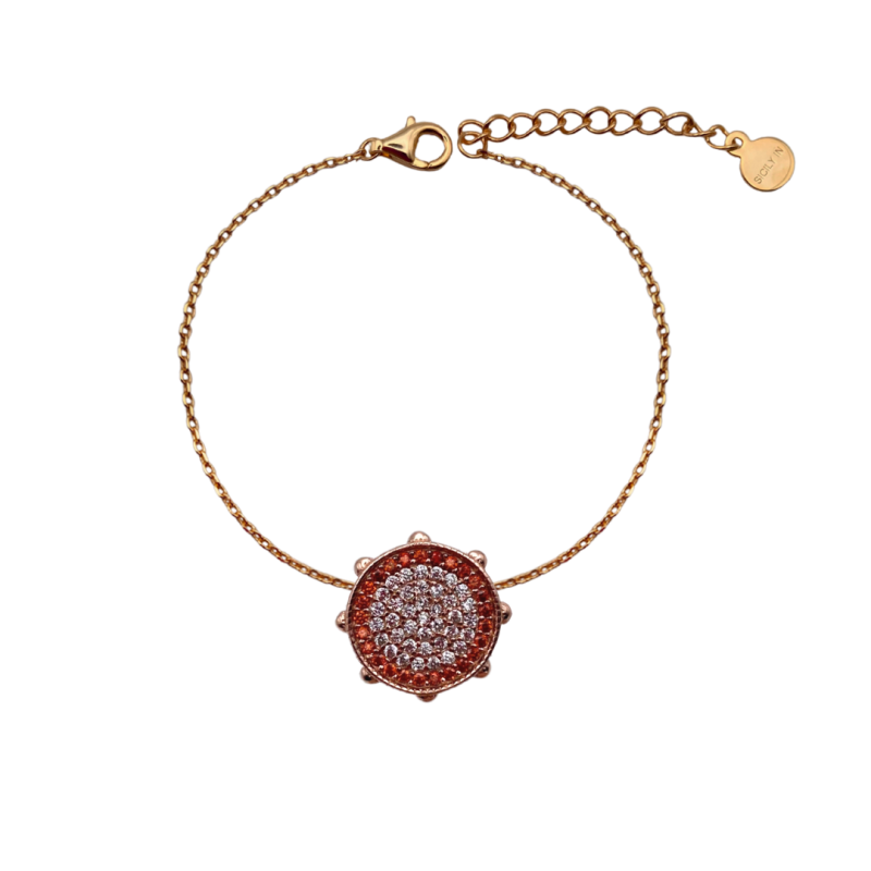 Bracciale rosato con charm tamburo siciliano in argento 925. Il tamburo, nell'antichità per via della sua forma circolare e dei suoi sonagli, veniva spesso associato al sole.